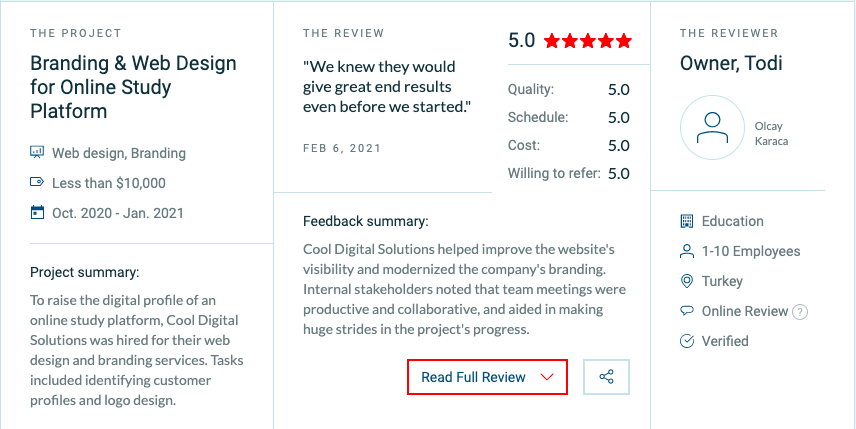 Verified and organized reviews allow service providers, like ourselves, to attract potential customers in an otherwise saturated market.