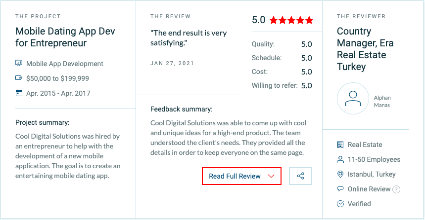 Clutch is a widely-referenced B2B ratings platform where businesses or individuals can leave feedback on firms they’ve engaged with.